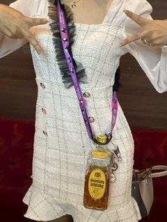 お疲れ様です〜 クロミちゃんのボトルストラップ🤭ペットボトルホルダーだけど、瓶にピッタリ笑笑 首からかけてくスタイルにしよかな笑笑 しゅ♡🥂