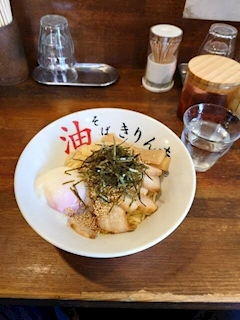 おはようございます! ボーイのいっせいです! 今日のラーメンは! 久しぶりの油そばきりん寺 大好きな炙りチャーシュー丼がまさかのなくて少し萎えてる けど今日も油そばは安定にうまい 明日は何食べよっかな? 今日も最高の笑顔でお客様をお待ちしております!
