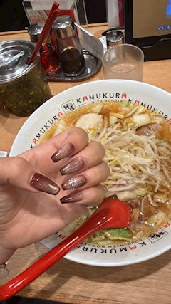 おつかれさまですっっ いつもたけちゃんのラーメン🍜みてて、スーパー行きたくて🤭 神座へ笑ニューネイル💅と共に🤣 美味しかったっっ(江坂にも神座できららしい🌟いかねば) 水曜日ですよんしゅ🥂